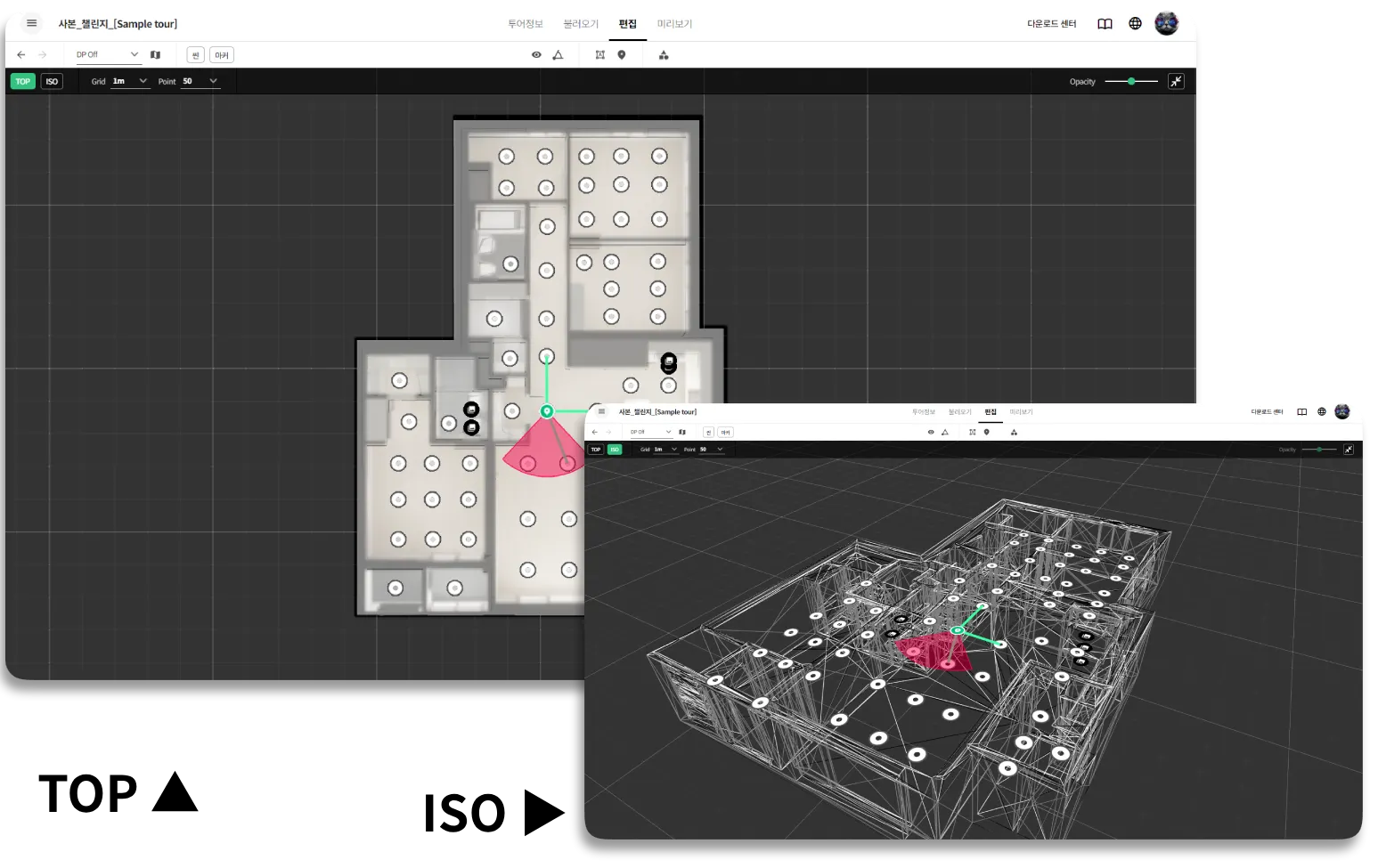됩니다.(ISO모드는 3D모델로 만든 투어일 경우에만 표시됩니다)