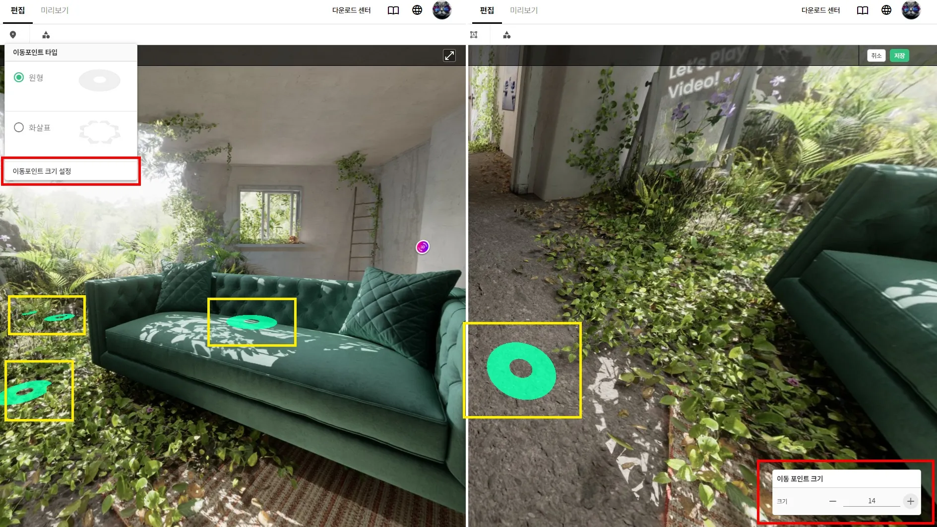 이동 포인트 설정 메뉴를 통해 이동 포인트 크기 변경이 가능합니다.