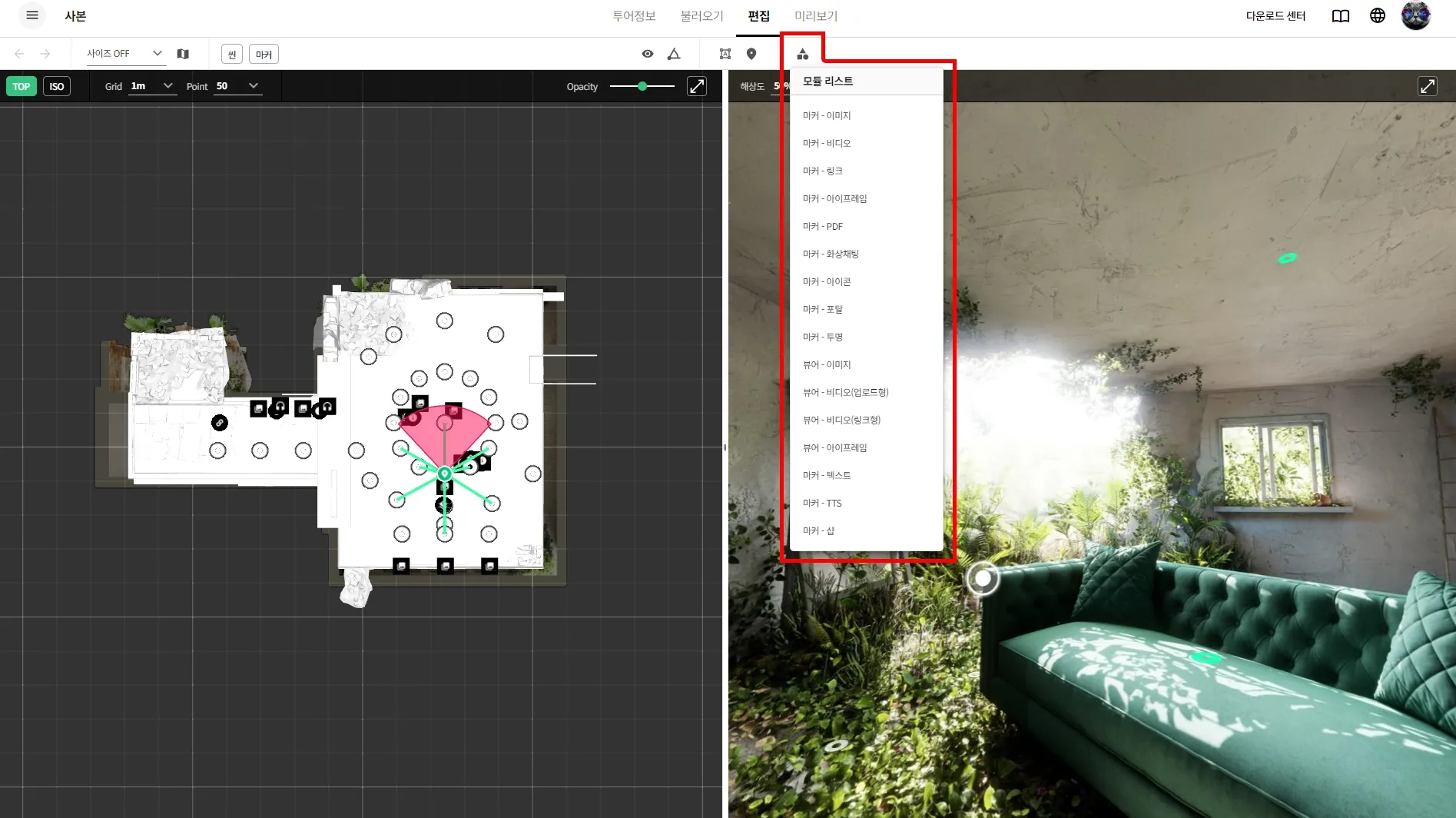 모듈이란 3D로 구현한 공간 안에서 다양한 콘텐츠 연동이 가능한 대화형 도구입니다.