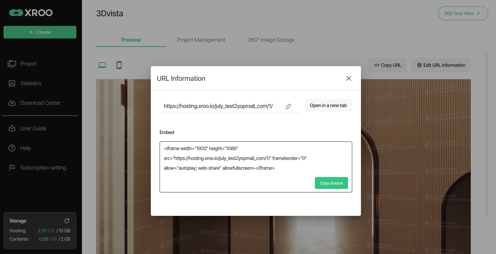 Once the upload is complete, XROO automatically generates a unique URL for your virtual tour. This URL allows you to access and share your tour instantly on any web browser.