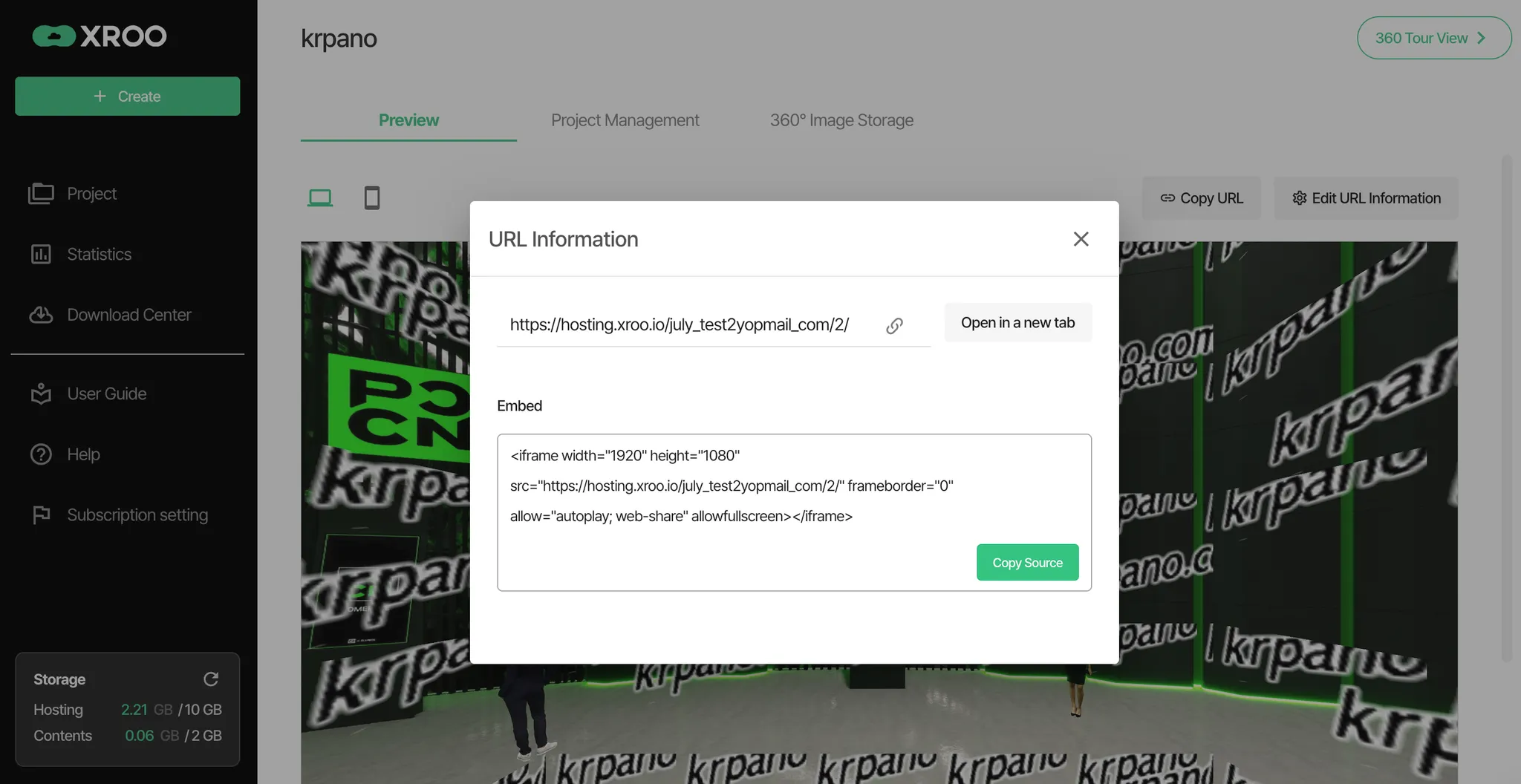 Once the upload is complete, XROO will automatically generate a unique URL for your virtual tour.