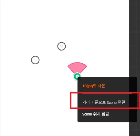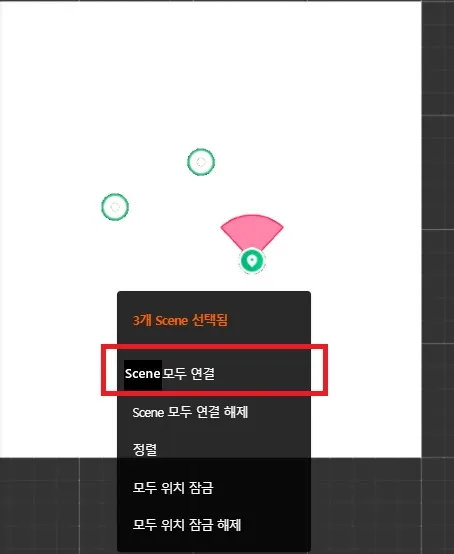 현재 선택한 씬을 기준으로 마우스 오른쪽 클릭 후 [거리 기준으로 연결]을 선택합니다.