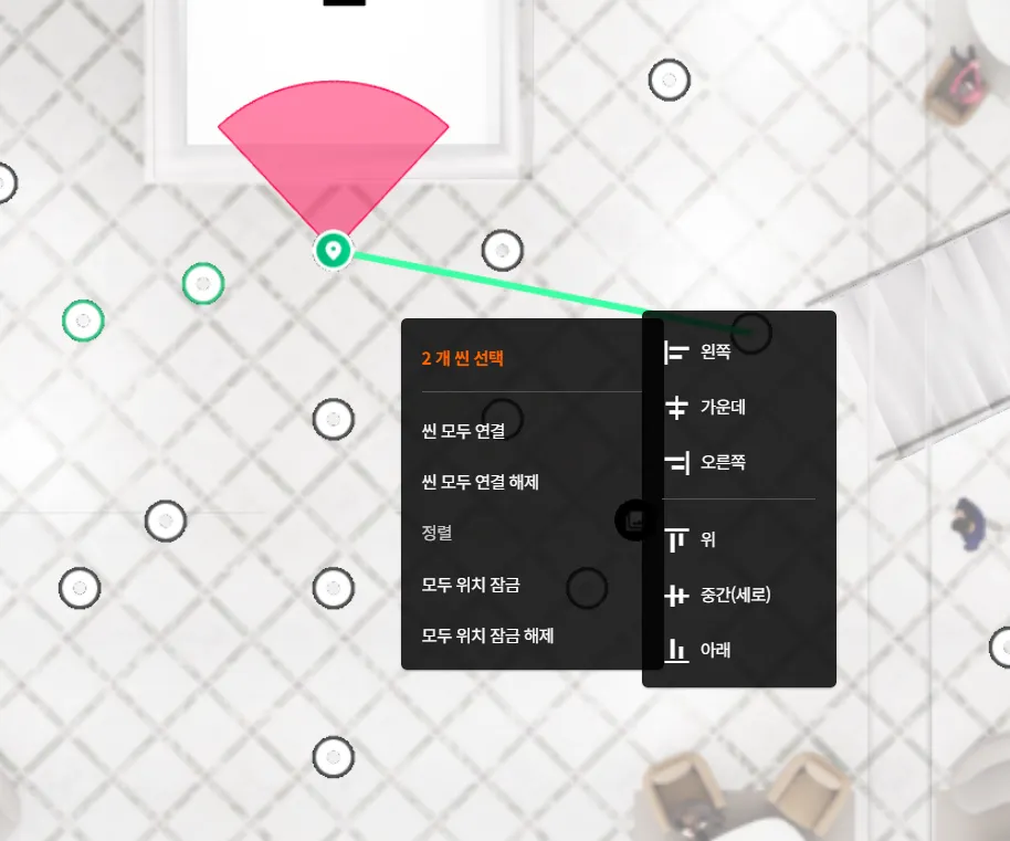 현재의 Scene 포인트 A를 클릭한 후 다른 Scene 포인트들을 드래그하면 선택한 Scene 포인트를 한꺼번에 AScene과 연결하거나 연결을 해제할 수 있습니다.