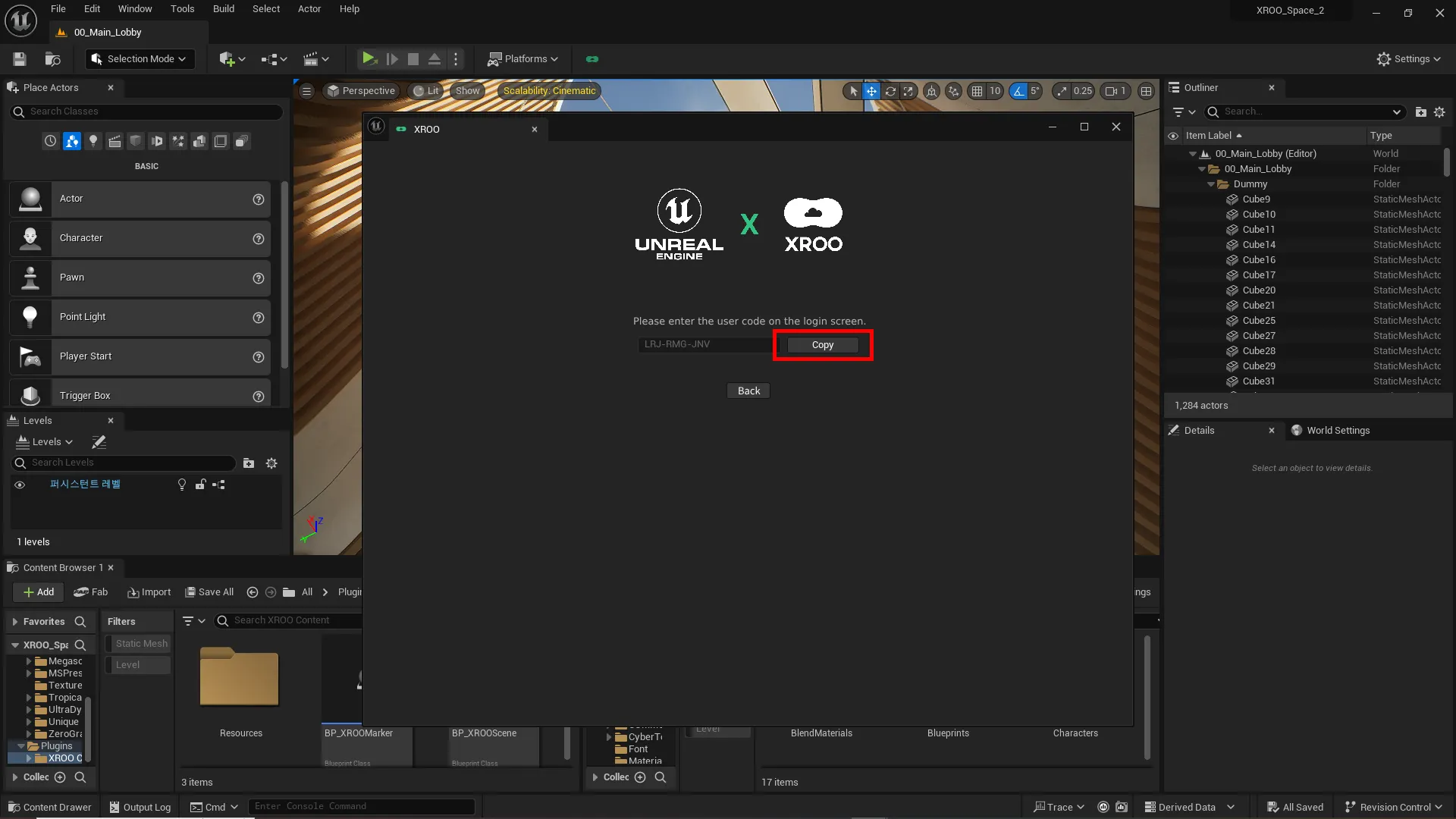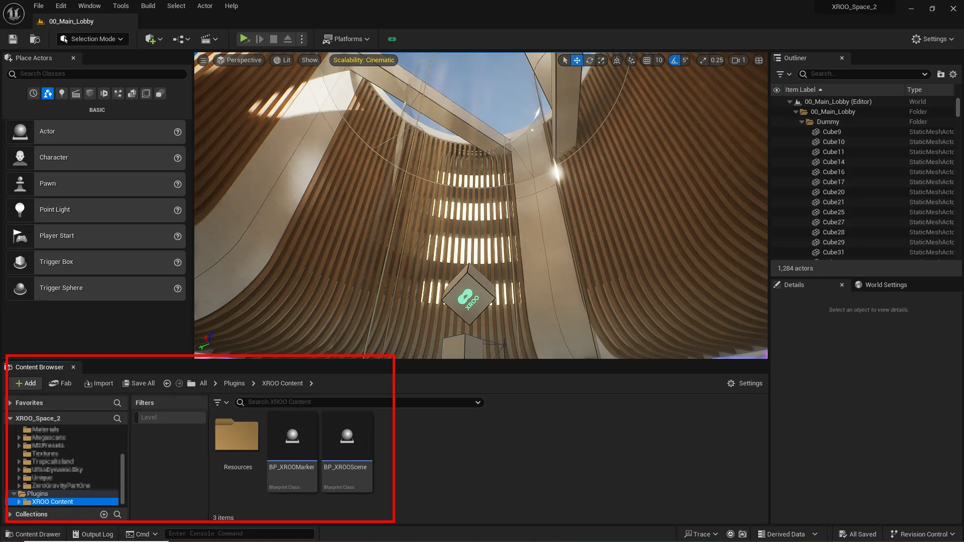 If the XROO plugin is installed correctly, you can see XROO content in the Content Browser.