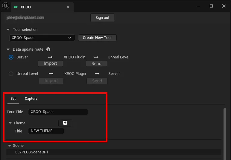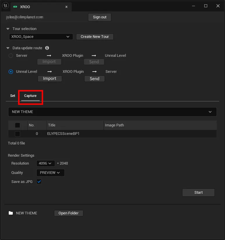 Go to the Capture tab in the XROO plugin window and select the scene you want to capture.