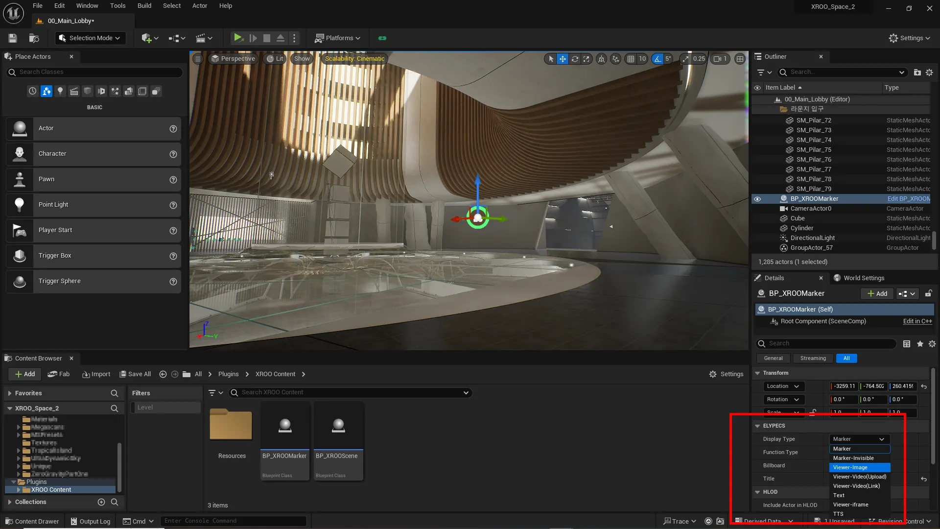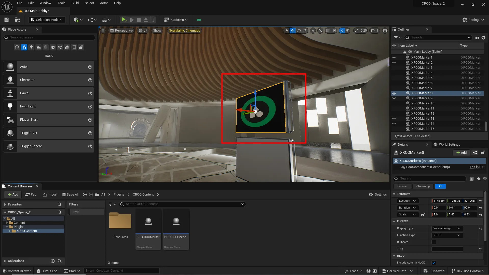 Select "XROO Content" in the browser to find MarkerBP(Infospot) and SceneBP.