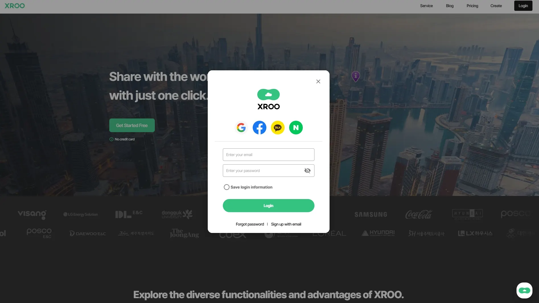 You can log in using the same account (Google, Facebook) as used on the XROO website.