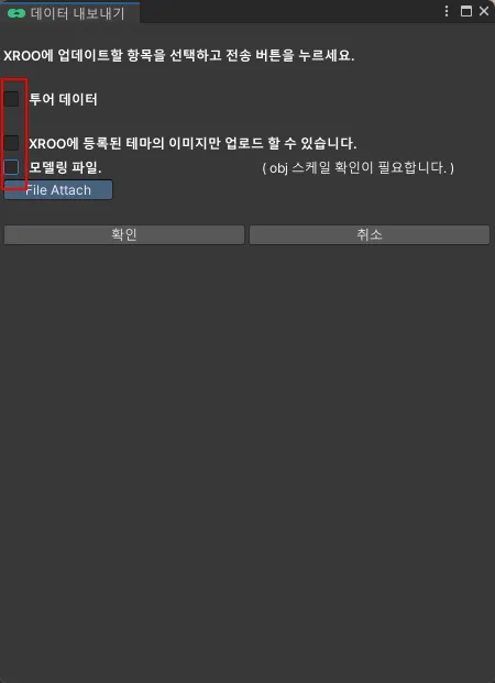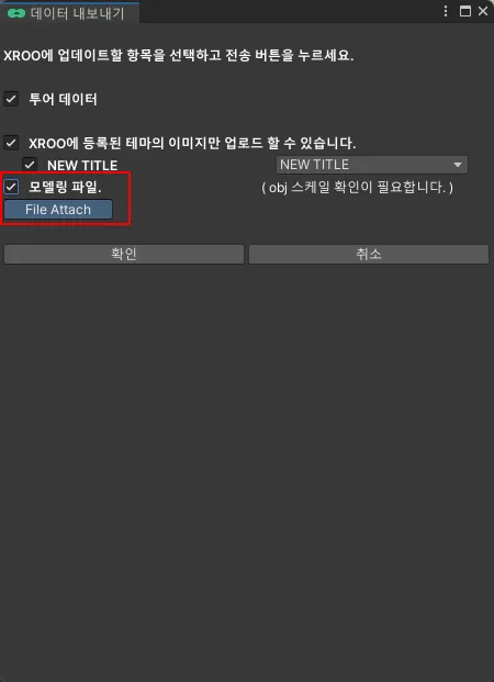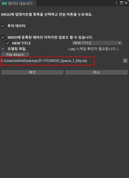 Export: 유니티의 프로젝트의 변경된 작업 데이터를 XROO 투어에 동기화 (Unity → XROO)