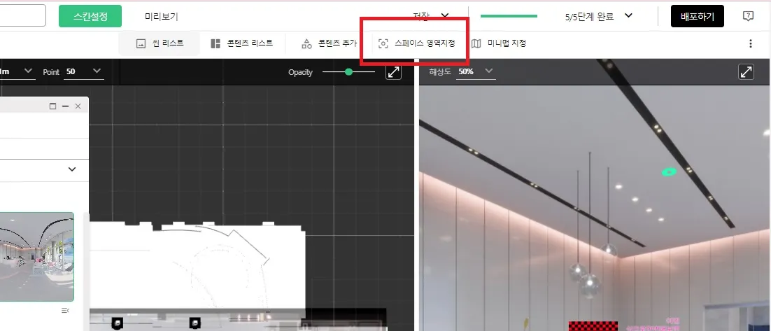 또는 툴바에 위치한 [스페이스 영역 설정] 버튼을 클릭하여 스페이스 영역을 설정하는 화면으로 이동할 수 있습니다.