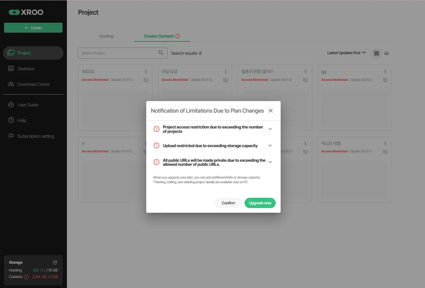 If the project limit is exceeded due to a downgrade, the excess projects will be marked as "Restricted Access."