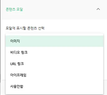 콘텐츠 모달은 프레임 타입이 이미지, 비디오로 선택한 경우만 설정이 가능합니다.
