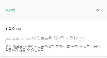 비디오 링크 방식 타입은 콘텐츠 모달 설정 불가함.