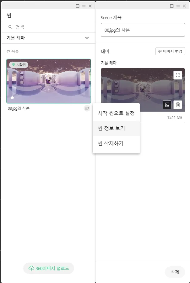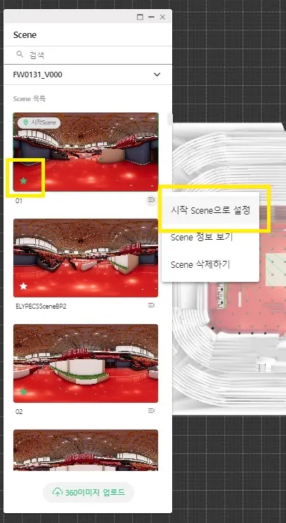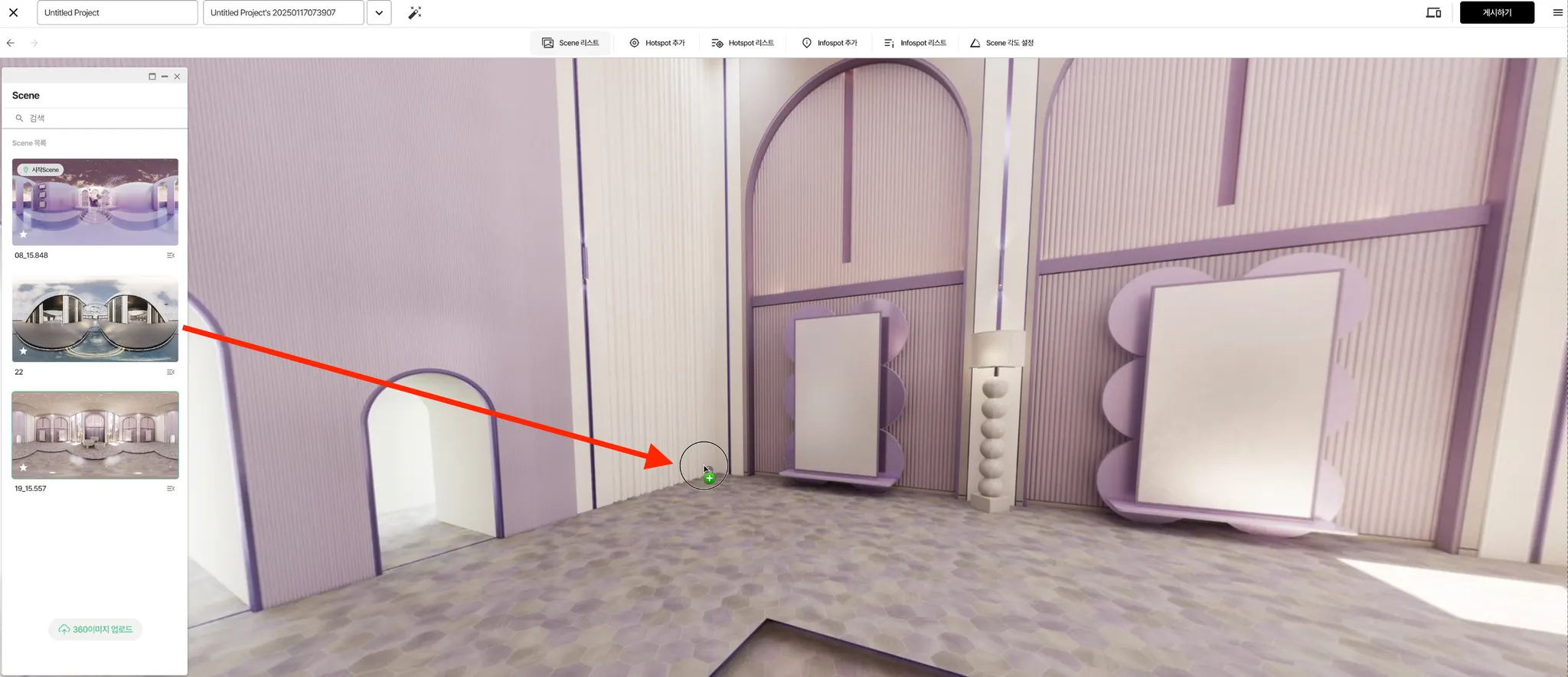 360이미지를 업로드하면 Scene이 생성됩니다.