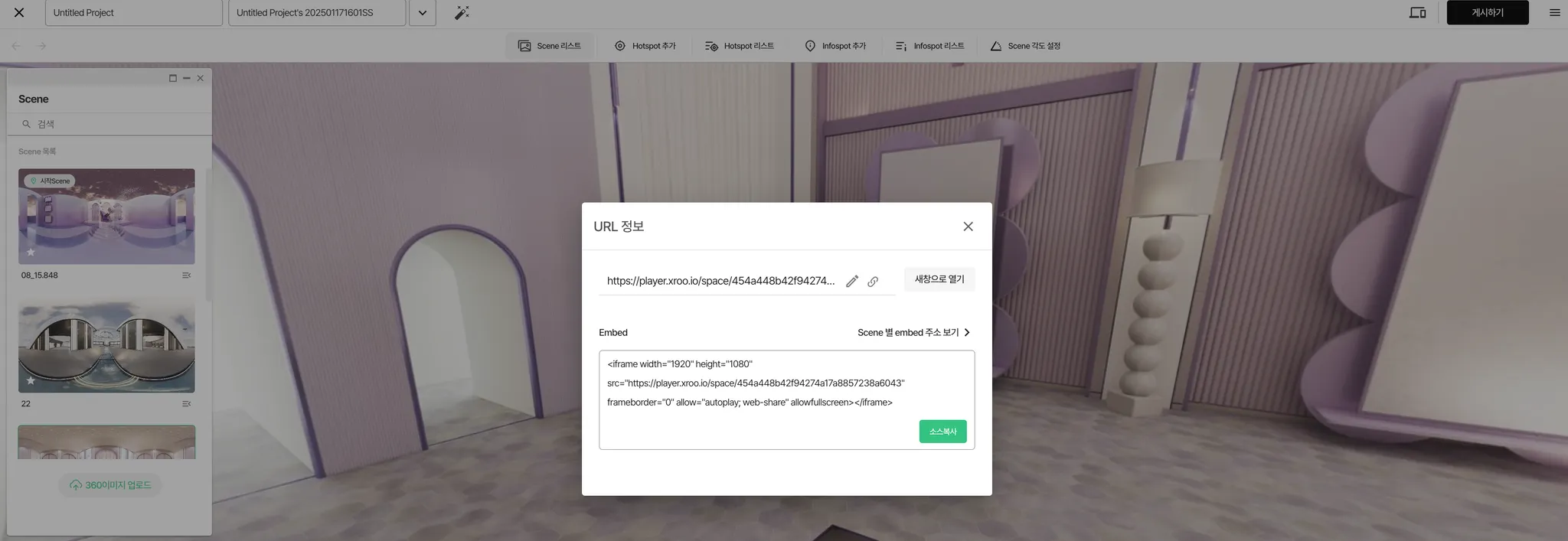 특정 Scene을 임베드할 수 있는 주소입니다.