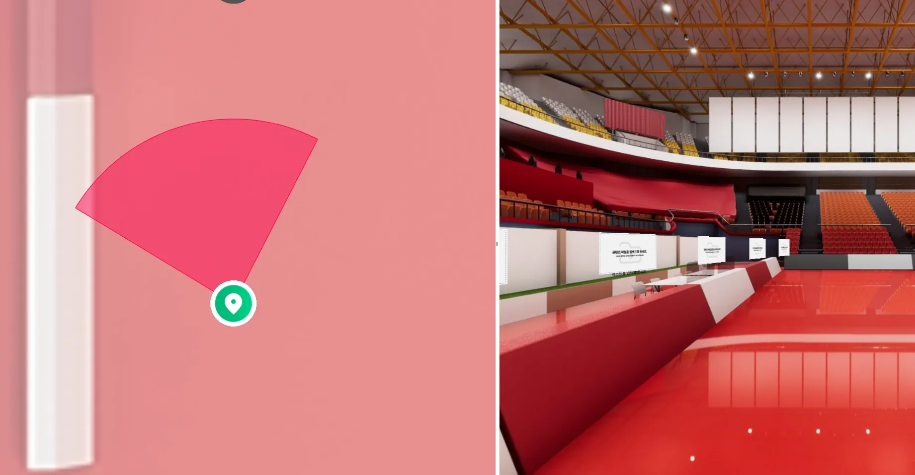 이동포인트 click : 시야각이 붉게 표시되면 해당 영역 클릭하여 좌우로 회전하며 조정
