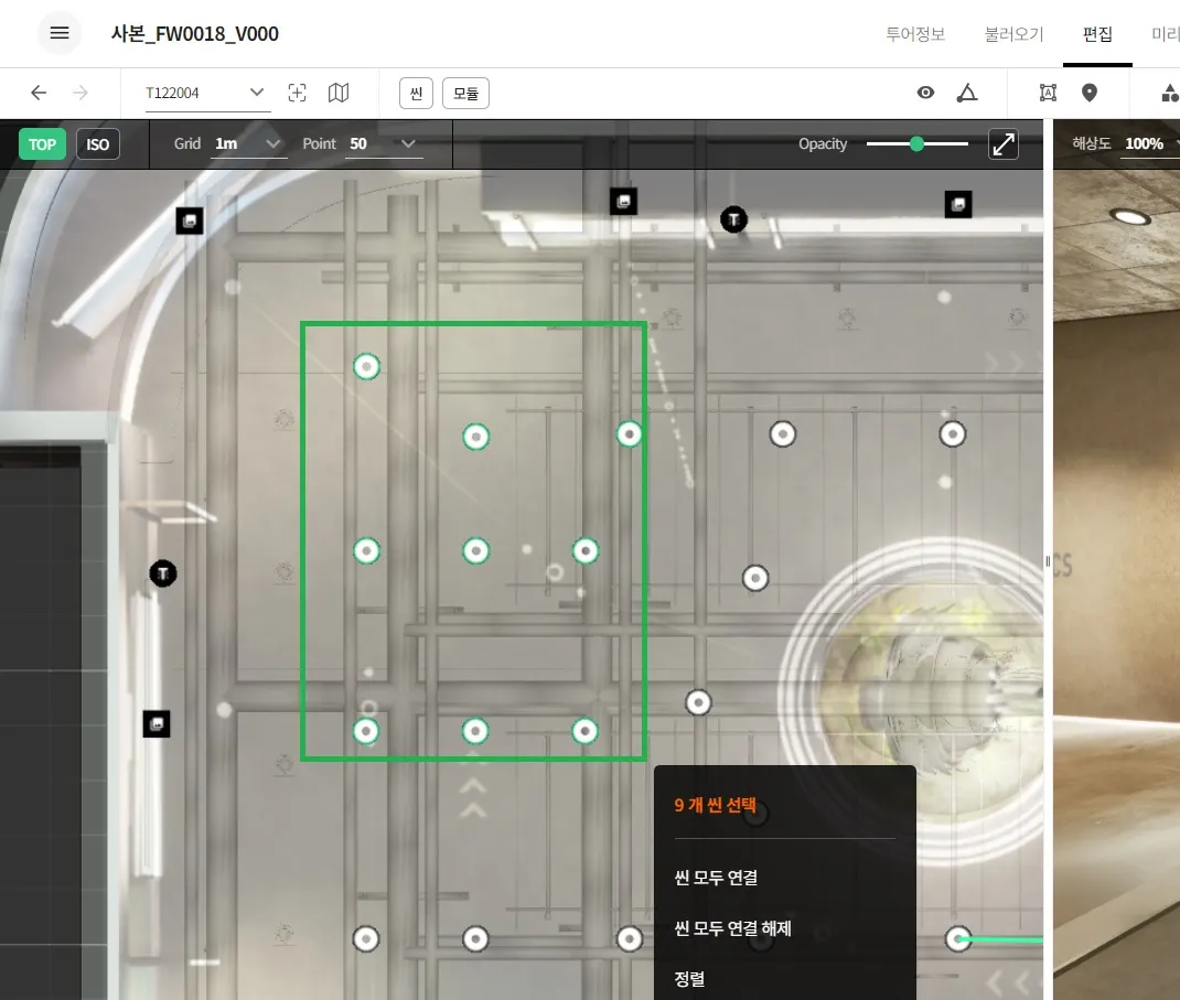 컨텐츠(모듈과 이동포인트)와 360이미지간 어긋난 위치를 조정해야할 때 사용한다.