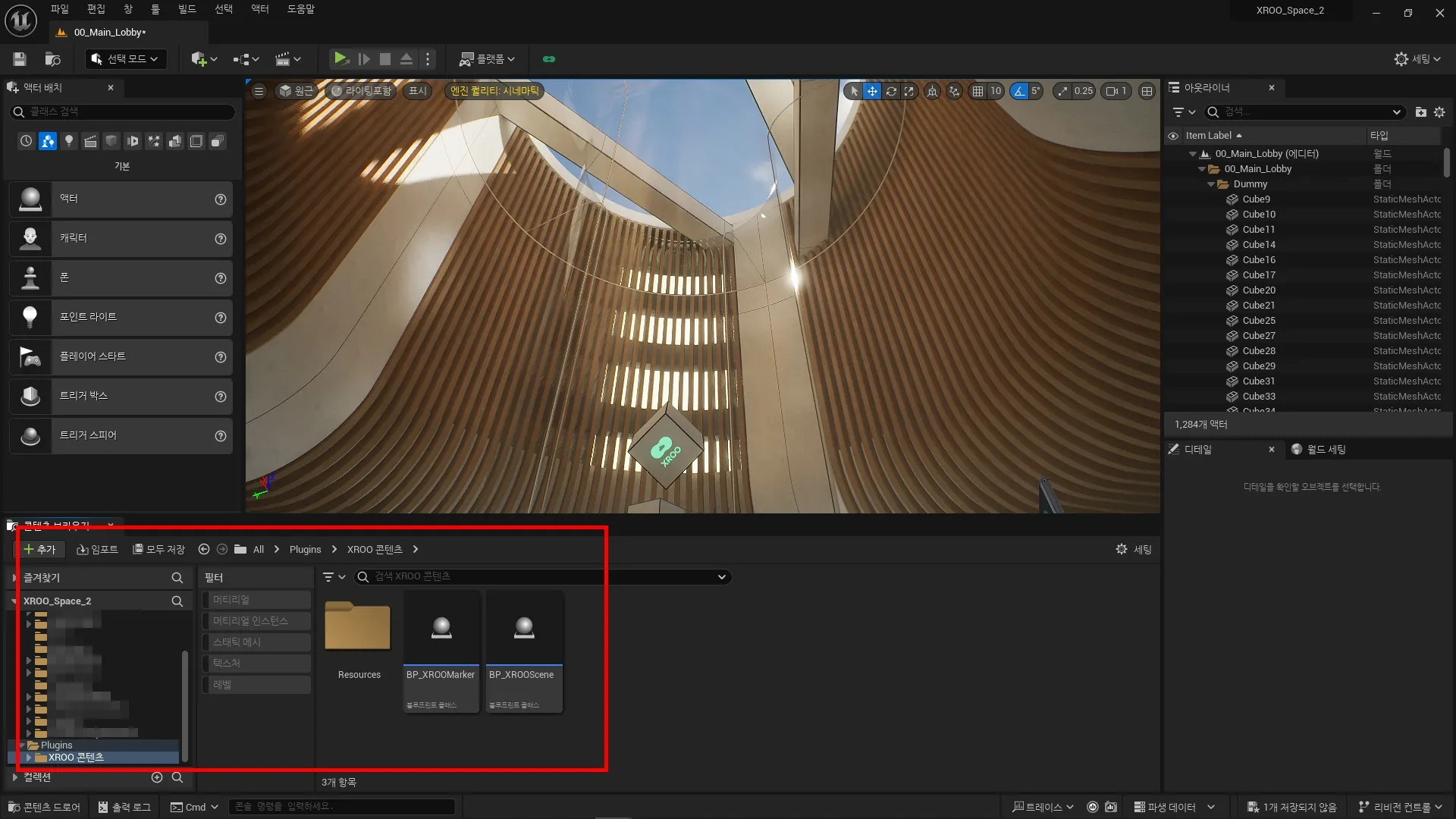 XROO 플러그인이 정상적으로 설치되었다면 콘텐츠 브라우저에서 XROO 콘텐츠를 확인할 수 있습니다.