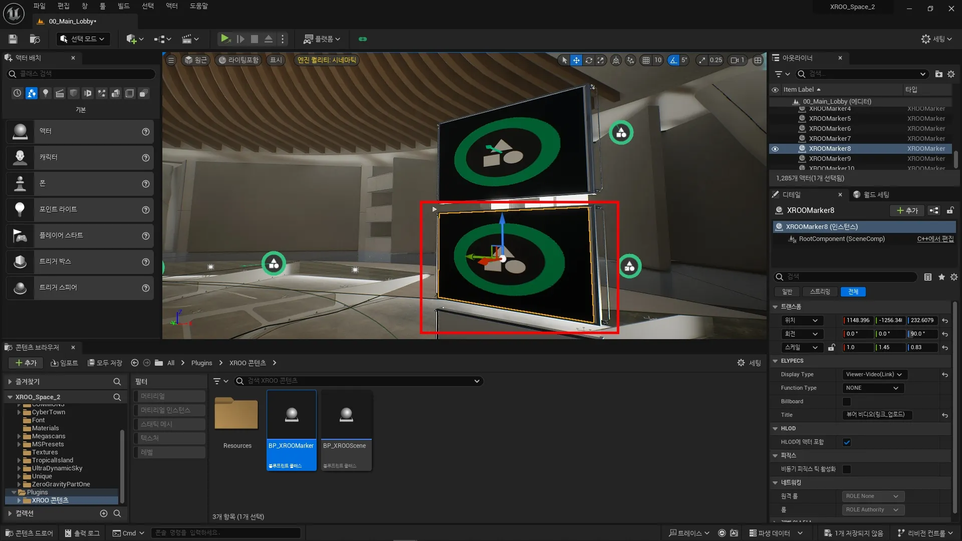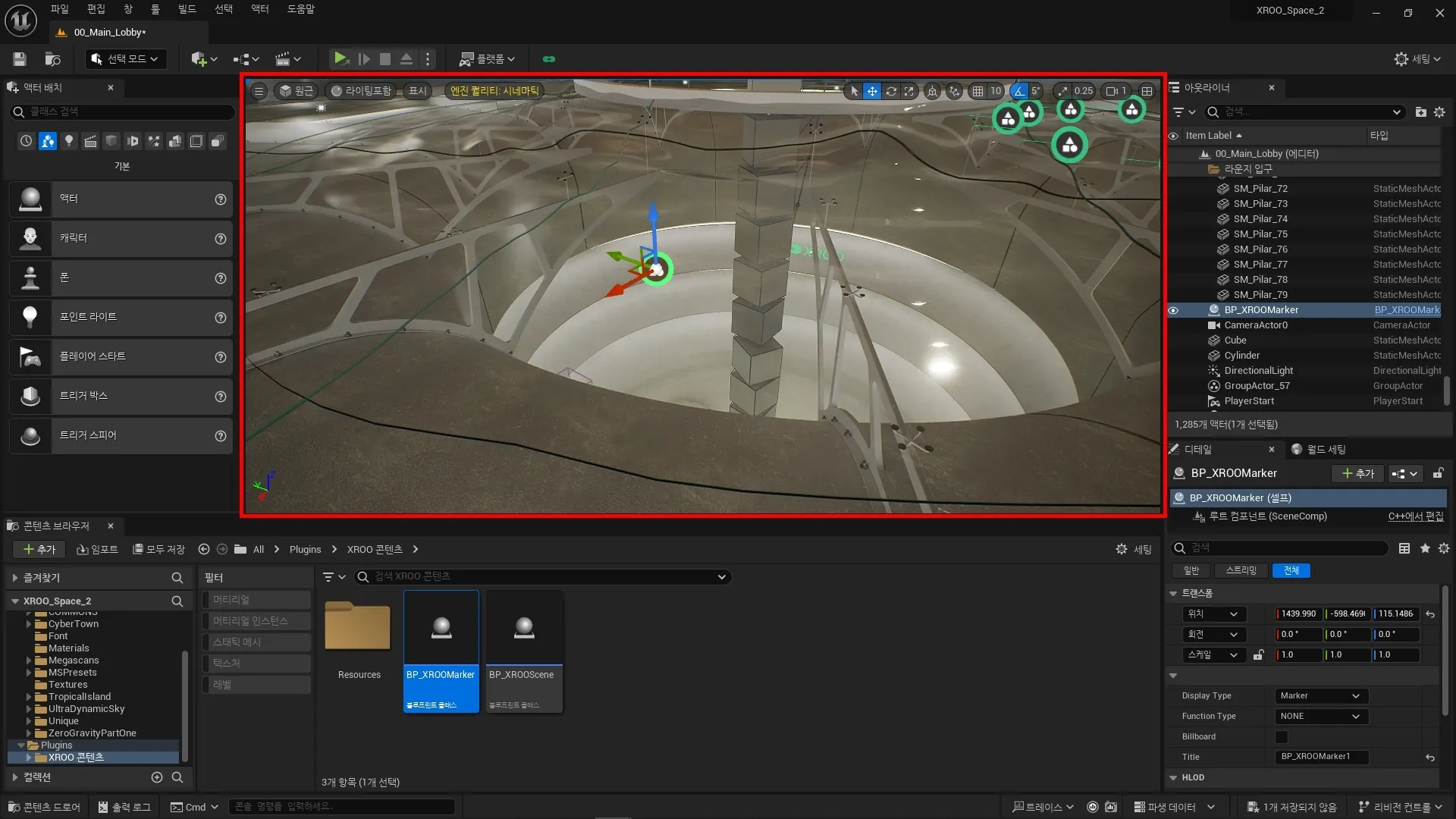 스페이스 편집 화면에서 언리얼 엔진을 통해 업로드한 3D 모델링이 키맵으로 제대로 표현되고 있음은 물론, 언리얼 엔진에서 작업한 콘텐츠 요소들이 제대로 노출되고 있음을 확인할 수 있습니다.