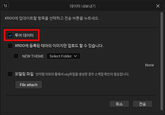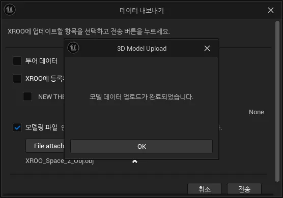 Export: 언리얼의 프로젝트의 변경된 작업 데이터를 XROO투어에 동기화 (Unreal → XROO)