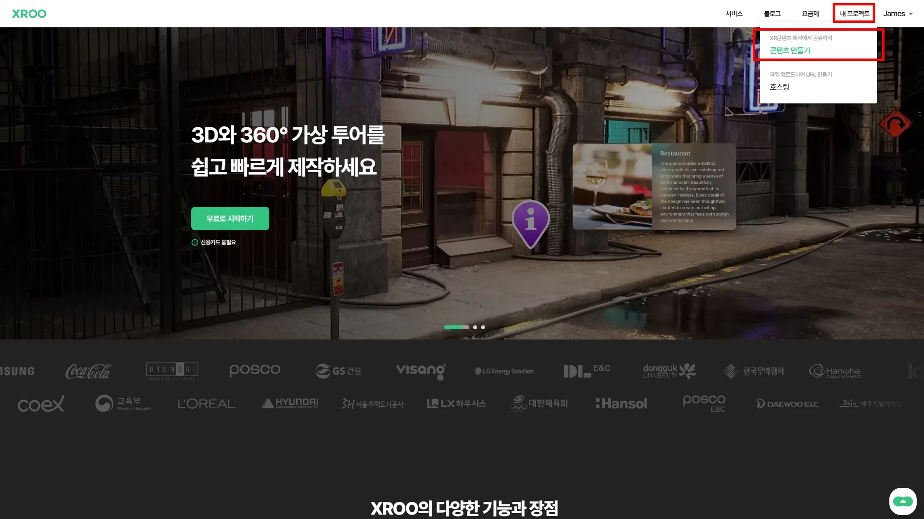 XROO 홈페이지에서 투어 & 작업 내역 확인