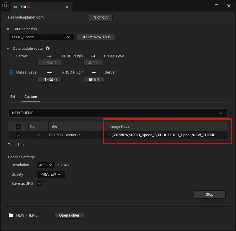 Save JPG의 체크가 되어 있는 경우, 캡쳐를 진행하는 테마 폴더에 360이미지가 JPG포맷으로 추출됩니다.