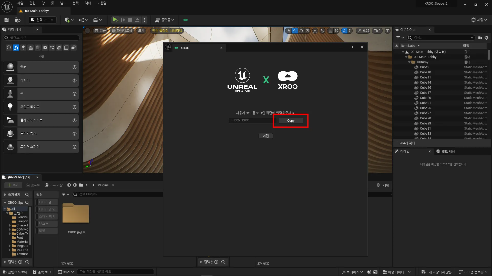 반드시 버전에 맞는 “XROO 언리얼 엔진 플러그인”이 설치되어 있어야 합니다.