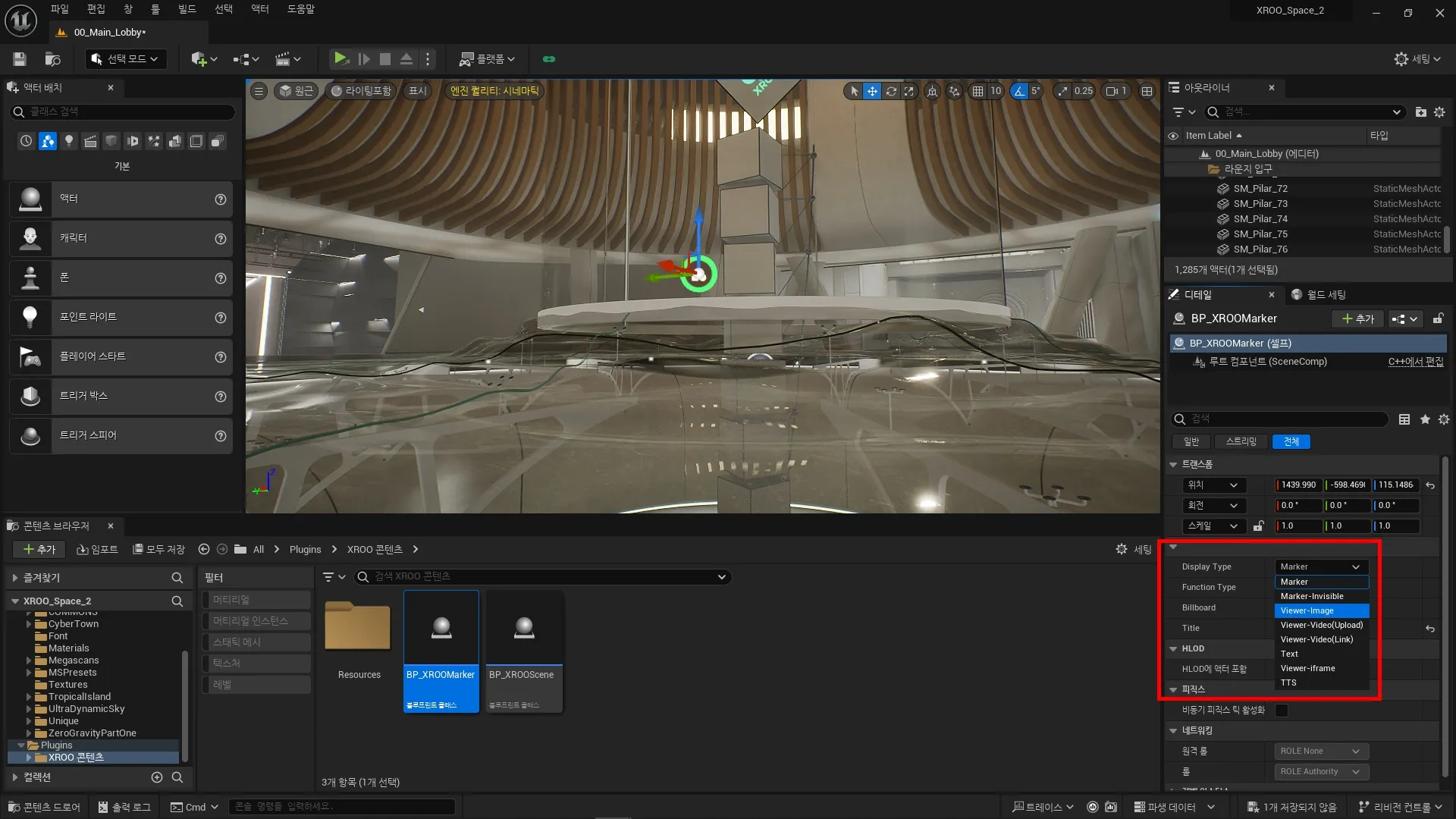인포스팟(마커)의 기능 타입은 언리얼 엔진에서만 변경 가능합니다. XROO에서는 인포스팟(마커)의 상세 정보 설정만 가능하고 인포스팟(마커)의 본래 기능 타입을 변경할 수 없으므로 원하는 인포스팟(마커) 모듈을 선택했는지 반드시 확인해 주세요.