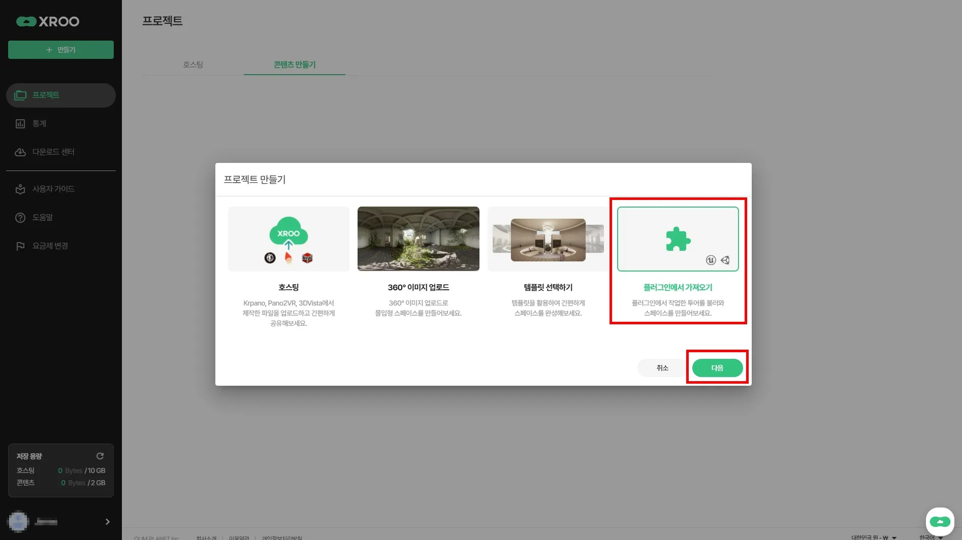 반드시 로그인을 해야 플러그인을 통해 XROO에 투어를 생성할 수 있습니다.