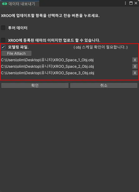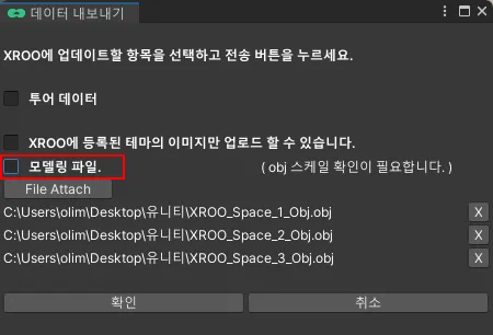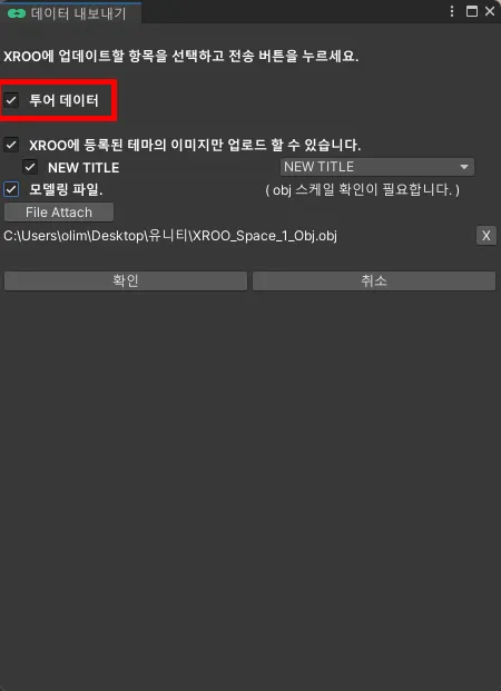 Export: 유니티의 프로젝트의 변경된 작업 데이터를 XROO 투어에 동기화 (Unity → XROO)