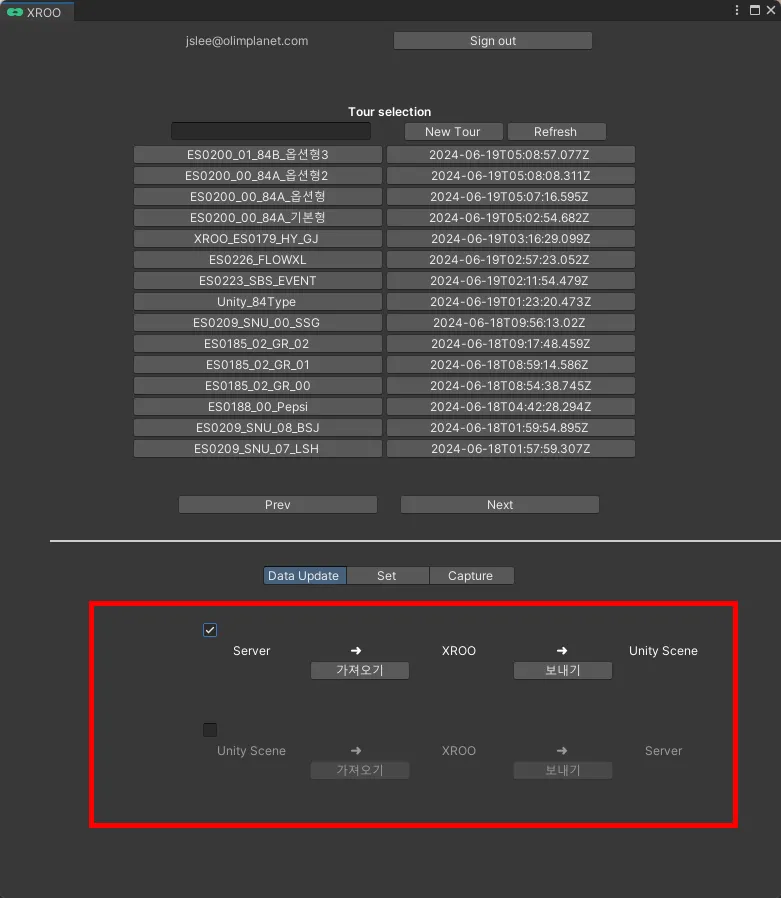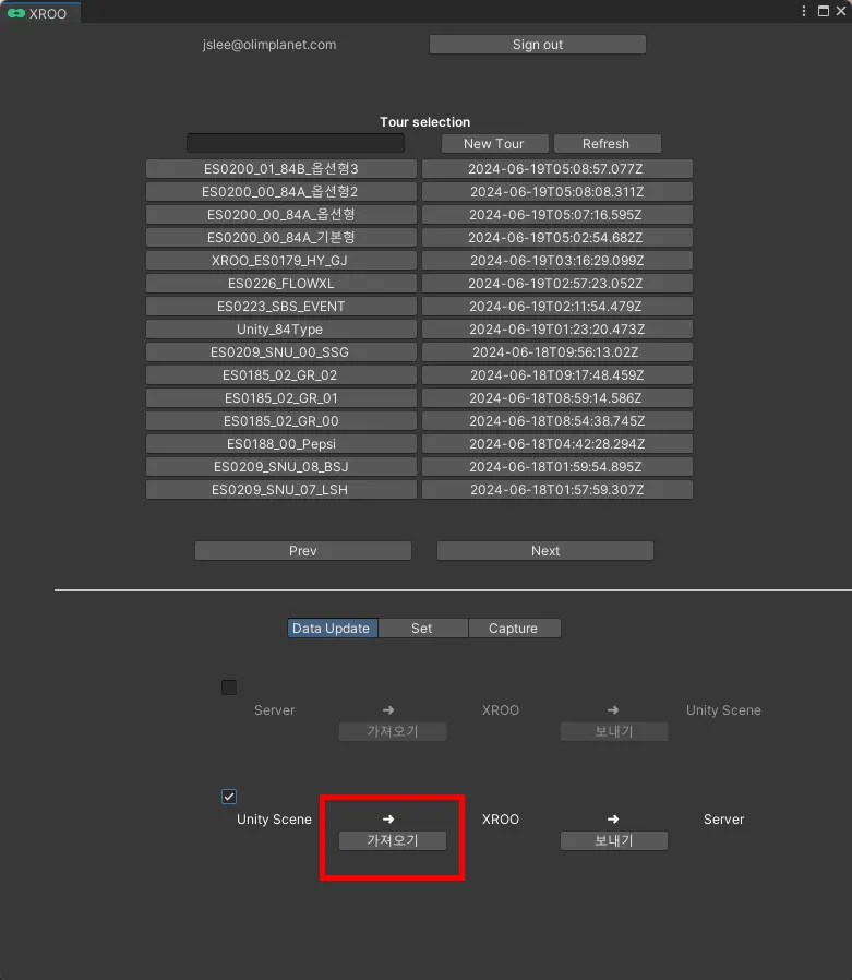 Import: XROO 투어의 변경된 작업 데이터를 유니티의 프로젝트에 동기화 (XROO → Unity)