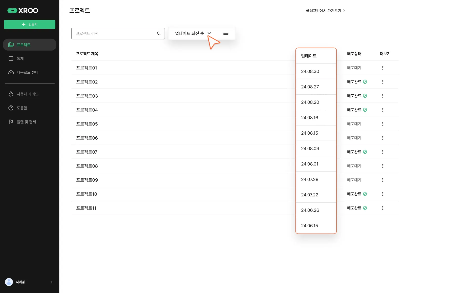 강화된 정렬 및 검색 기능을 통해 필요한 프로젝트를 신속하게 찾아보세요.