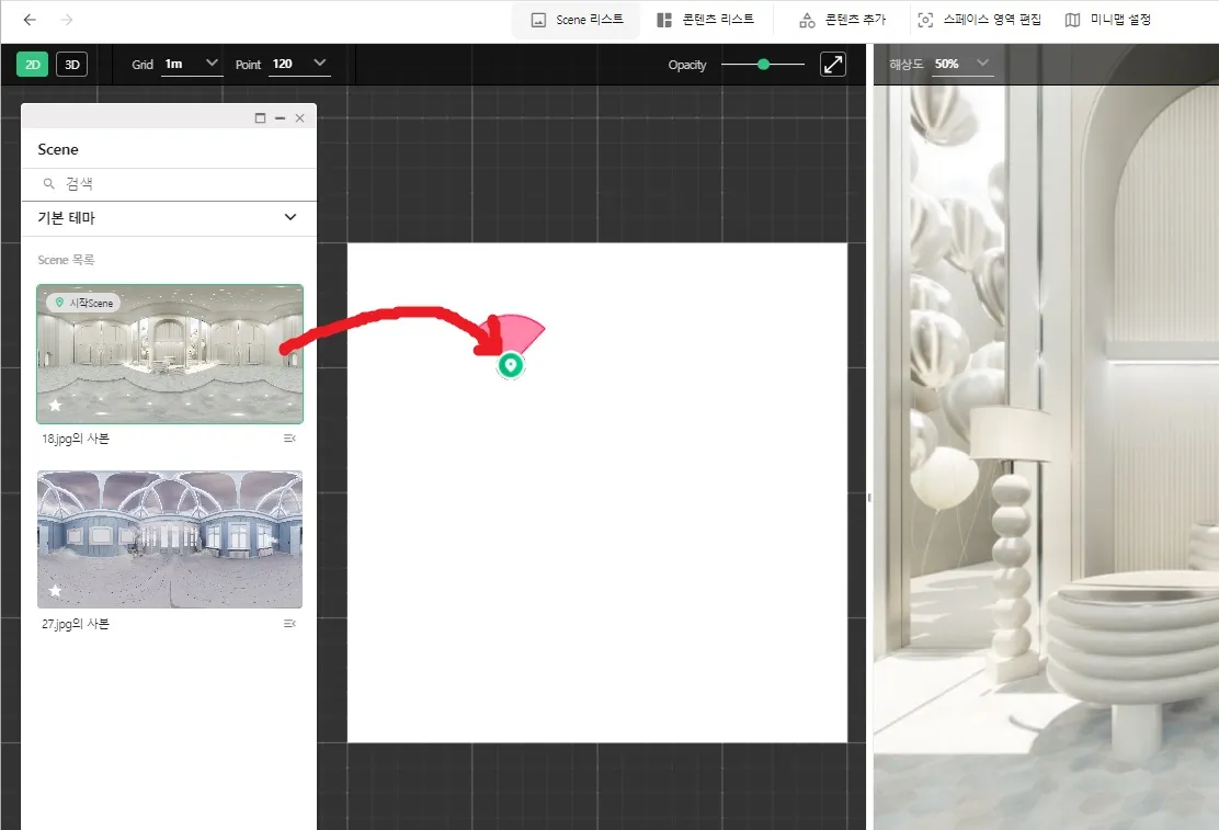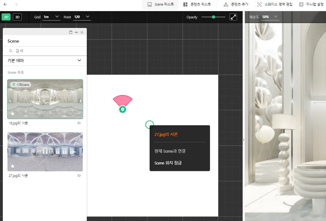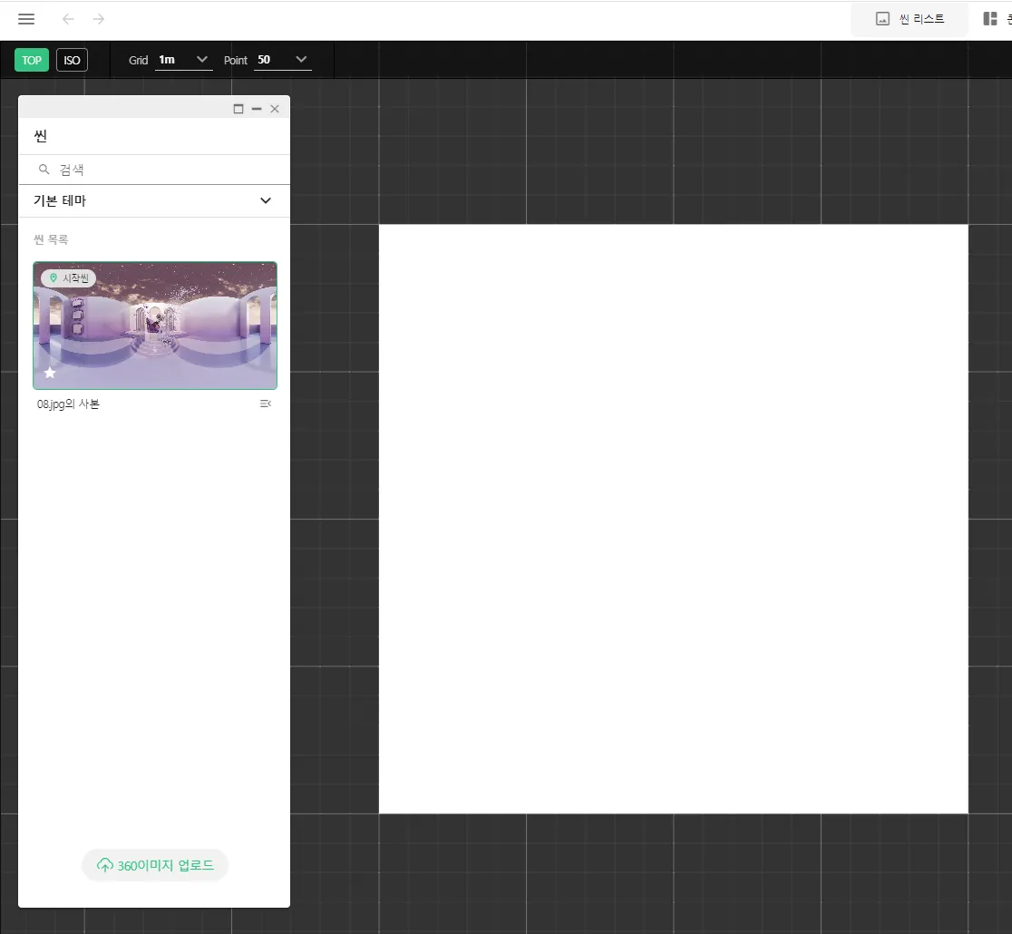 360이미지를 업로드하면 Scene이 생성됩니다.
