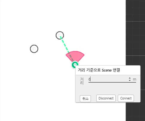 현재 선택한 씬을 기준으로 마우스 오른쪽 클릭 후 [거리 기준으로 연결]을 선택합니다.